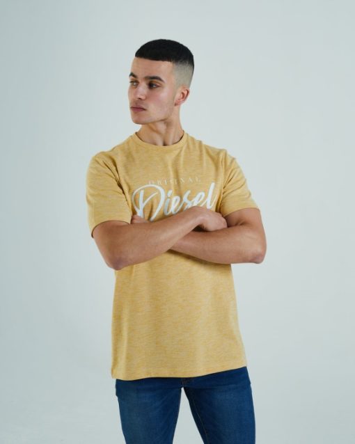 חולצת טריקו ג’רסי לגברים בשילוב של כותנה ופוליאסטר עם גרפיקה מודפסת של חזה דיזל בשילוב הדפסי גומי שטוח ומוגבה.