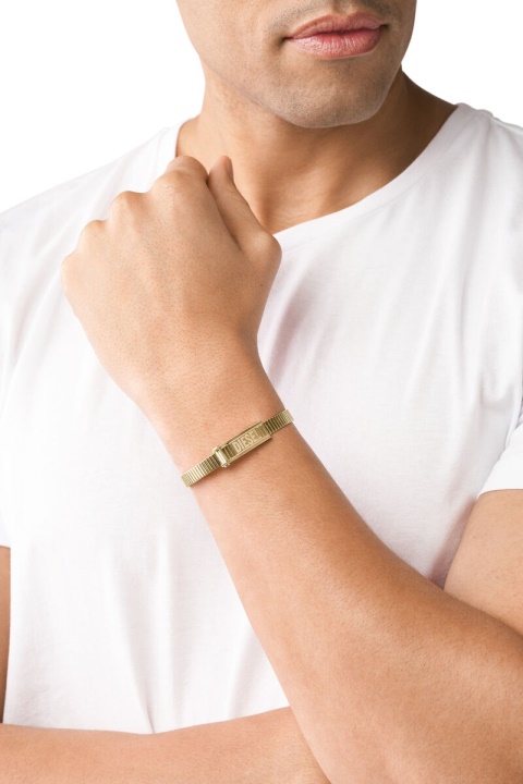צמיד הערימה של דיזל כולל פלדת אל חלד זהב וסגירה מתקפלת.
