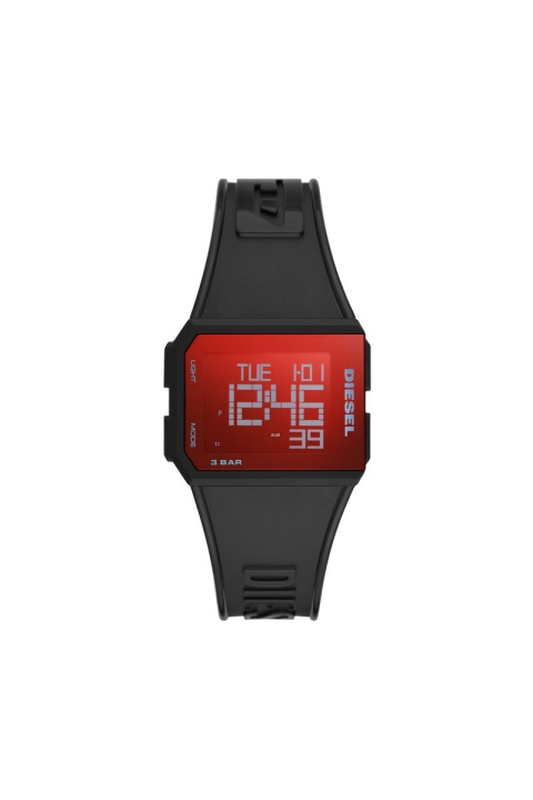 אחריות השעון Chopped בגודל 38 מ”מ של דיזל כולל חוגת תצוגה שלילית, תנועה דיגיטלית ורצועת סיליקון שחורה.