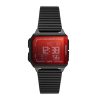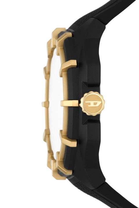 WARRANTYהשעון עם מסגרת 51 מ”מ של דיזל כולל חוגה שחורה מט, תנועה של שלוש ידיים ורצועת סיליקון שחורה.