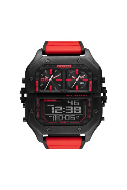 אחריות שעון Clasher זה בגודל 51 מ”מ כולל חוגה בעלת מרקם שחור עם מדדי סטיק, תנועת אנ-דיגי ורצועת סיליקון אדומה. חומר מארז: נירוסטה גימור מארז: גודל מארז משולב (WxH): 58x64MM עובי מארז: 13.5MM חומר חיבור: צבע סיליקון חבילה התנגדות מים שחורים:3 ATMM תנועה:אנלוגית
