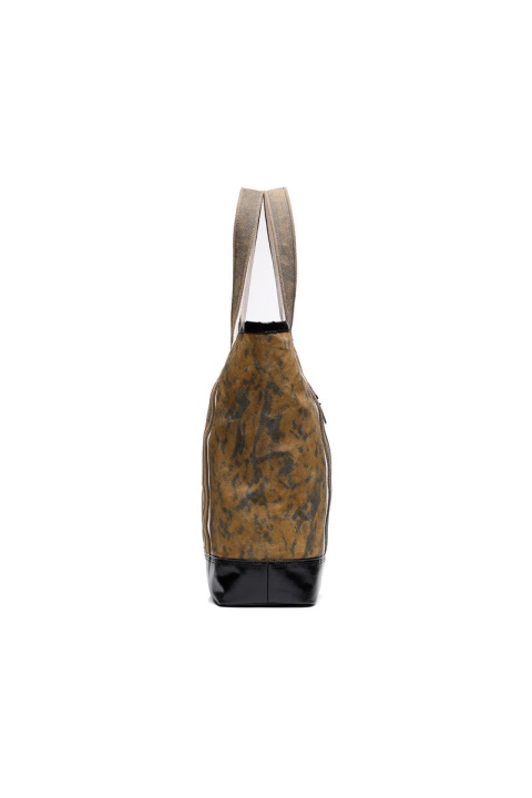 תיק עם מראה צבאי וינטג’. בנוי מקנבס מעובד בשעווה, יש לו ידיות ארוכות וגופי ברזנט עמידים לחיזוק. גימור עם הוספת לוגו משולש וחומרה בגוון כסף עתיק. ללא קו.