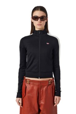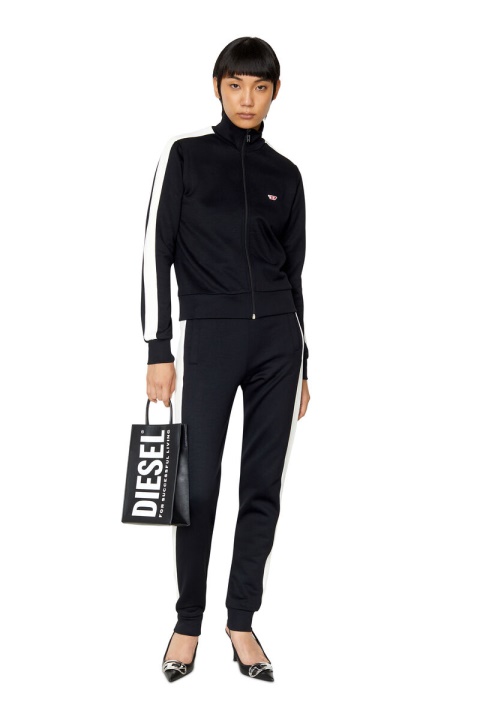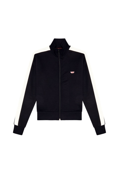 סווטשירט עם רוכסן מלא בהתאמה רגילה, מעוצב על פי סגנונות מסלול ספורטיביים. הוא עשוי באמצעות כותנה אורגנית מוסמכת וניילון ממוחזר. מפורט עם רצועות שרוולים מנוגדות ותיקון לוגו ד זעיר.