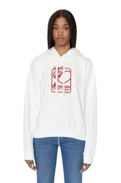 סווטשירט קפוצ’ון לנשים בכושר רגיל זה עשוי מג’רזי כותנה עם גב רך עם לולאות. החזה מפורט עם לוגו לב רקום תלת מימד של ‘דיזל פאם’.