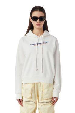 קפוצ’ון צבוע בפיגמנט חתוך מכותנה לולאה להתאמה רגילה, הוא כולל מראה וינטג’ מטופל אוגו דיזל תעשייתי בהדפס נפיחות, לוגו ג’ינס בחזית.