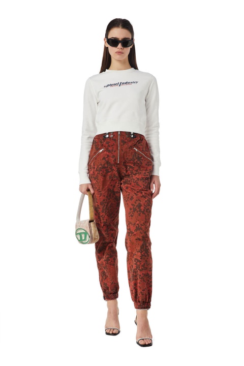סווטשירט עם גזרה דקה ושולי קצוץ מעט. הוא צבוע בפיגמנט למראה וינטג’, עשוי מג’רסי כותנה עם לולאה עם הדפס דו-צבע דיזל תעשייתי, הדפס פחזניות של חטיבת ג’ינס בחזית.