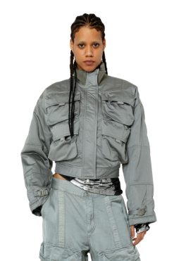 עשוי מסאטן בתערובת פשתן, ז’קט נשים זה מבריק וגם מרושל. צללית ההתאמה הרגילה מוגדרת לפי קו הצווארון הגבוה, לשוניות החפת מתכוונות וכיסים תועלתניים מרובים, אחד מהם נושא לוגו רקום ‘אובלי D’.