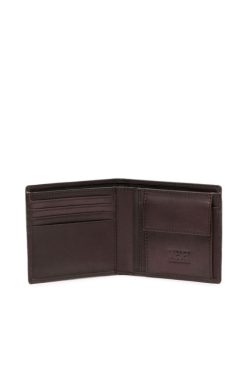 ארנק דו-קיפול לגברים עשוי עור מגורען, מעוטר בחזית עם חומרת לוגו D אליפסה.