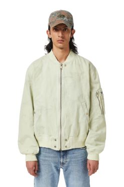 ז’קט בומבר מרופד בהתאמה רגילה, עשוי גברדין כותנה איטלקית עמידה. הוא מועשר בכתמי לכלוך ועיטורי מצוקה עדינים, עבר טיפול ושטיפה באבן כדי להקנות מראה וינטג’י. לוגו ד סגלגל על כיס השרוול.