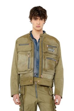 ז’קט לגברים בהשראת ארכיון בנוי מכותנה בשעווה למרקם דוחה מים. אפשר להזיז את כיסי הסקוטש הניתנים להסרה מסביב לפרופיל הרופף שלו ולמקם כרצונך.