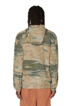 מעיל רוח לגברים מניילון מודפס עם מוטיב הסוואה. גזרה להתאמה רגילה, ז’קט זה בעל מבנה קלת משקל ובטנת רשת. מכסה המנוע והשוליים מאובטחים עם שרוך מוסת.