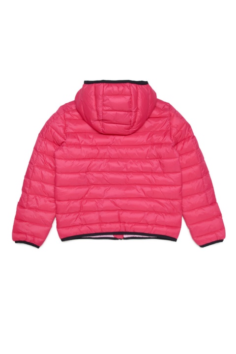 ז’קט פאפר לילדים מניילון מרופד. עמוס בריפוד מבודד, לסגנון זה יש מכסה מנוע, כיסי רוכסן ופנים גווני. שרוול מעוטר בהדפסה לוגו מנוגד.