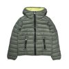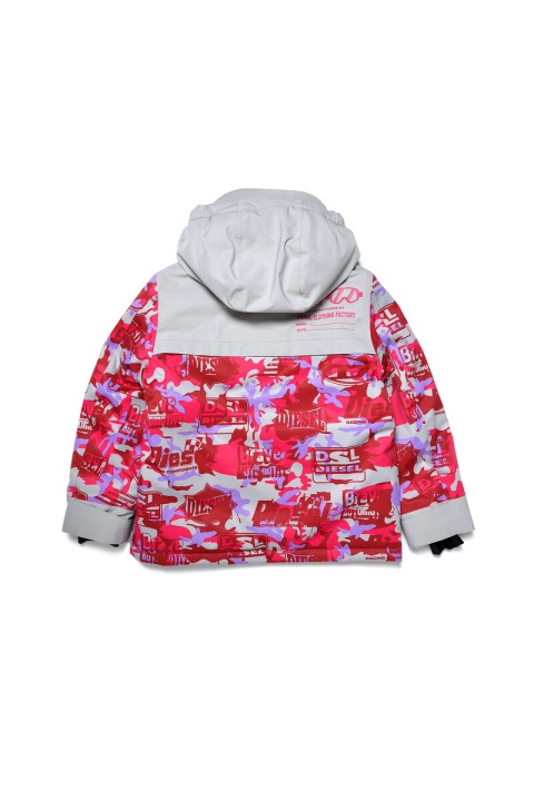 ז’קט מרופד לילדים זה בנוי מבד טכני עם הדפס לוגו ארכיוני. מעוצב עם עול פשוט, ברדס וכסם, הוא מפורט עם הדפסה פלואו והדגש התואמים את הבטנה.
