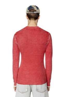 מגשר לגברים עם צווארון V מכופתרת וגזרה דקיקה. סריג צלעות זה, שנספה מצמר שמקורו באחריות, הודפס במיוחד מבפנים כדי ליצור אפקטים לא אחידים, מדמי צבע, עם לוגו מודגש במרכז.