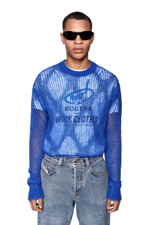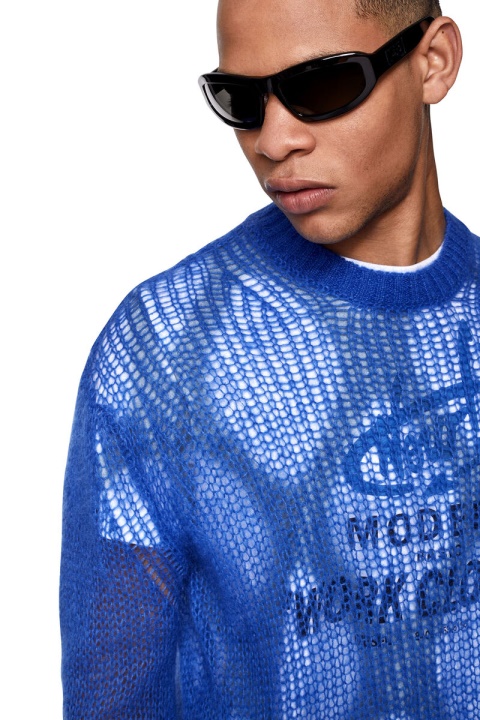 החלק העליון השכבתי הזה הוא חלק מקולקציית המסלול של אביב-קיץ 2022. הוא סרוג בצורה רופפת מתערובת אנגורה מטושטשת כדי לתת הצצה למוטיב הארגייל הנועז המודפס על חולצת הטי-שירט שמתחתיה.