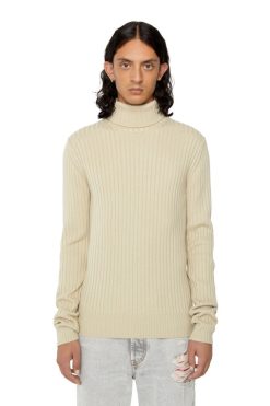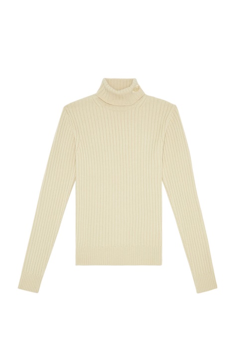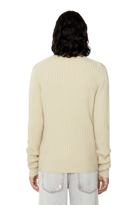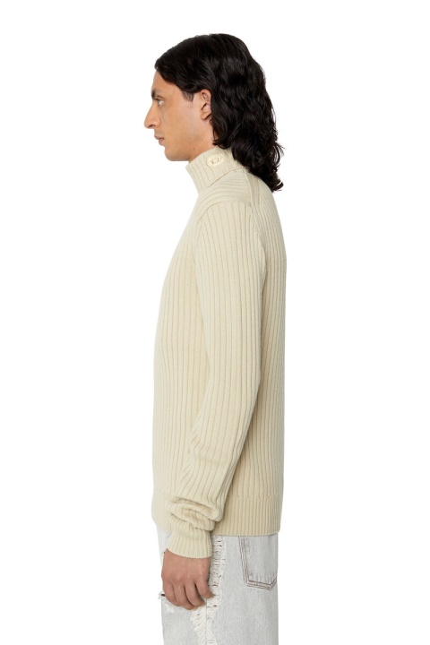 סוודר לגברים עשוי מצמר שמקורו באחריות. הסרוגה עם צלעות רחבות, הצללית הדקה כוללת צווארון גולף עם פירוט עדין עם רקמה ‘סגלגלה D’.