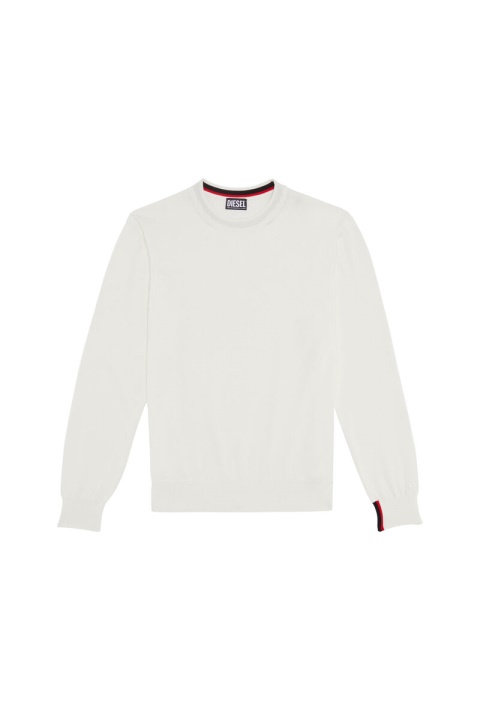 סוודר בכושר רגיל עשוי כותנה אורגנית. הוא כולל לוגו ד רקום בגווני בשרוול השמאלי יחד עם פסי אינטרסיה דו-גווניים, אותו מוטיב פסים נראה בתוך הצווארון. בגד זה יוצר באחריות.