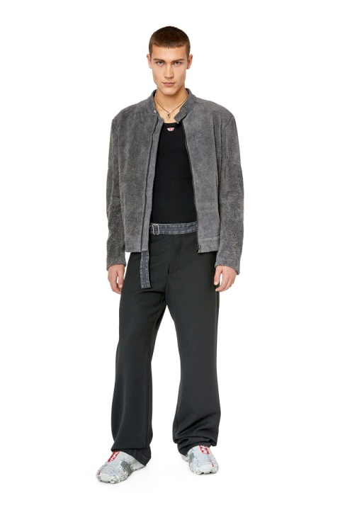 ז’קט אופנוענים לגברים זה חתוך מעור קרום מישוש. צללית ה-racer המעוצבת שלו כוללת חפתים רוכסנים קלאסיים וצווארון רצועה.