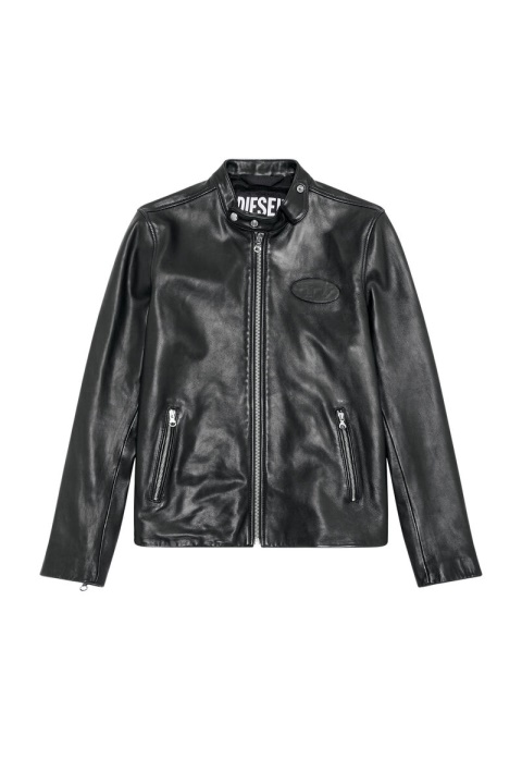 מעיל אופנוענים לגברים עם צללית מוטו ספורטיבית. פריט זה, שעוצב להתאמה רגילה, עשוי מעור שחור גמיש שנקרע על החזה, וחושף שלט מתכת ‘סגלגל D’. הבטנה מבטיחה שכבות חלקות.