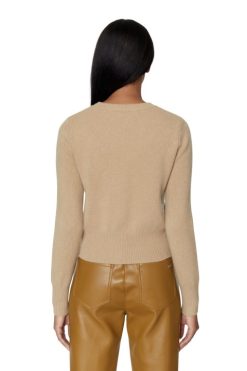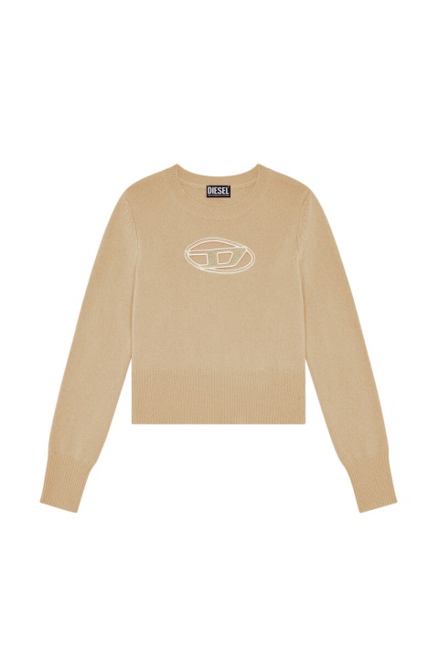 סוודר לנשים זה עשוי מתערובת רכה של קשמיר וצמר ממוחזר, עם שוליים מצולעים. סגנון רגיל, הוא כולל חתך חזה עם לוגו ד סגלגל, רקום בחוט טונאלי.