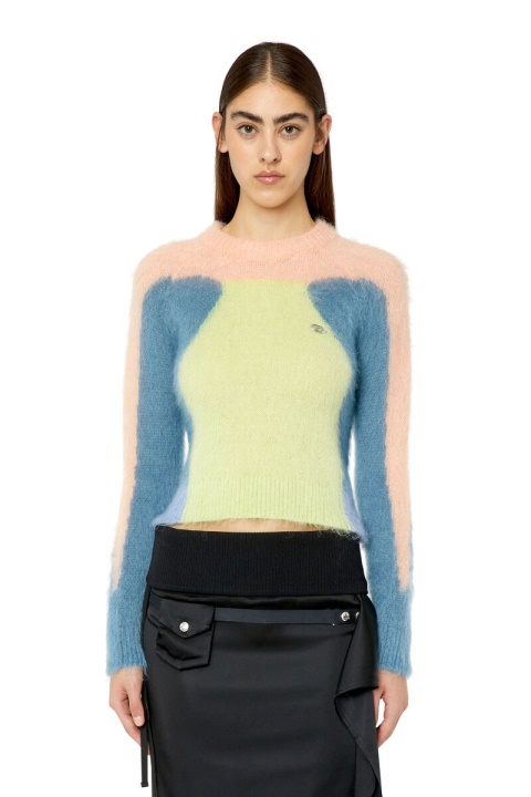 מגשר לנשים זה הוא סריג מוברש נעים המסתובב מתערובת אנגורה מועשרת בצמר. מפורט עם לוגו ‘סגלגל D’ מתכת, יש לו התאמה הדוקה וגווני פסטל רכים, חסום צבע בקווים זורמים וארגונומיים.