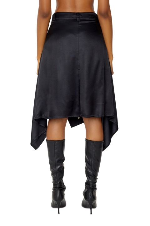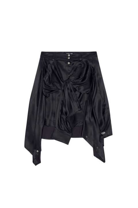 חצאית כפתורים מלאה זו עשויה מסאטן ויסקוזה-משי. חולצה מזויף עם הזרועות קשורות בחזית מעדכן את צללית ההתאמה הרגילה שלה, מותג עם לוח D אליפסה ממתכת על המכפלת.