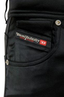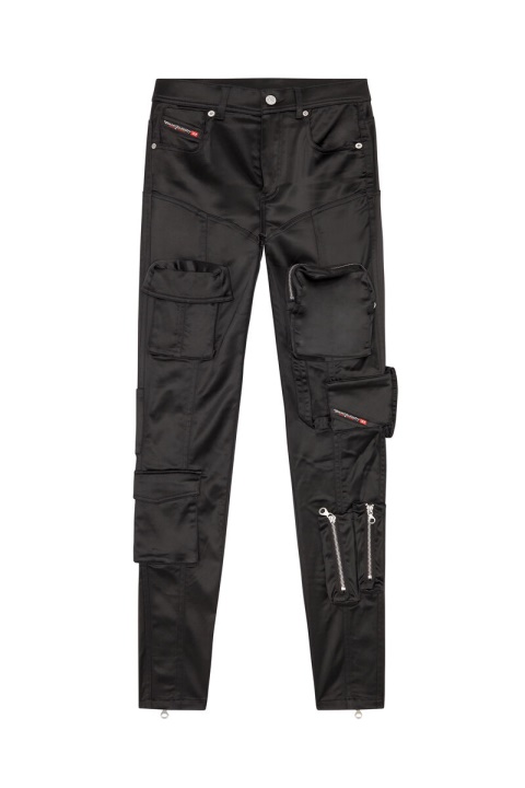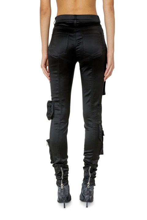 מכנסי נשים בעלות גזרה דקיקה אלה בנויים מסאטן סופר מתיחה. עדכון סגנון קלאסי של חמישה כיסים עם כיסים מרובים על הרגליים, הם פתחי רוכסן בחפתים.