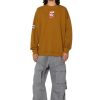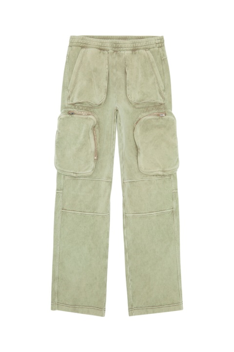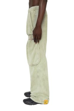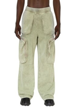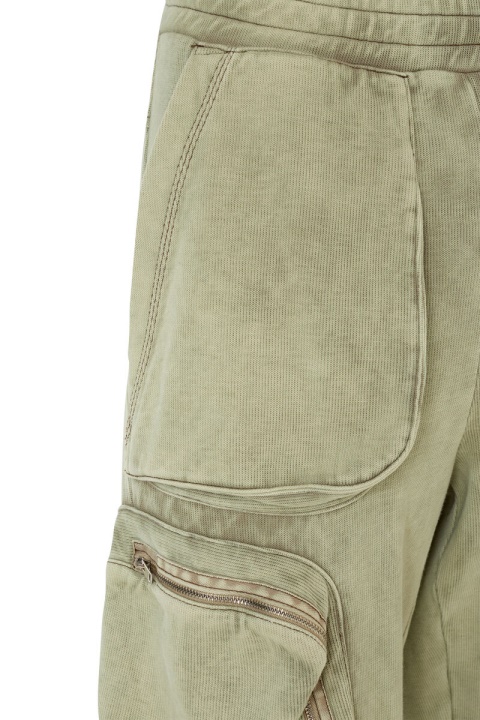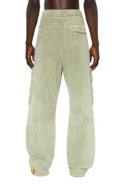 מכנסי טרנינג לגברים עם צללית רפויה ורחבה. חתוכים מכותנה מצולעת שכבה כפולה בגימור שיש, הם קיימים כיסים תלת מימדיים גדולים ותג בד ממותג בחפת.