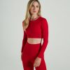 טופ רך במיוחד עם שרוולים ארוכים עם חגורת מותניים עמוקה מחטבת גוף ויצירות אמנות מגומי סיליקון.