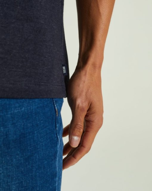חולצת טריקו פסי כותנה לגברים עם לוגו גומי על החזה. חברו את הטי-שירט הזו לזוג מכנסי הג’ינס של דיזל למראה בגדי ג’ינס נינוח. הדוגמנית לובשת מ. מומלץ להקפיד על מידה רגילה. 100% כותנה.