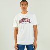 חולצת טי לגברים מכותנה עם אפליקציה רקומה על החזה. חבר את הטי-שרירט הזו עם זוג מכנסי הג’ינס דיזל שלנו למראה קולגיאלי מושך לאחור. הדוגמנית לובשת מ. מומלץ להקפיד על מידה רגילה. 100% כותנה