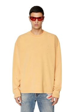 סווטשירט גברים עם צווארון צווארון בג’רזי כותנה עם לולאה. עיצוב דג סלמון חיוור זה עשוי בשילוב של טכניקות, כולל צביעת קשירה, וכתמים של מגנטה והדפסה לוגו גרפי בגב. הצללית היא אוברסייז, המוגדרת על ידי העול האחורי וחריצי הצד.