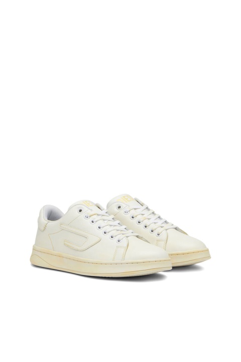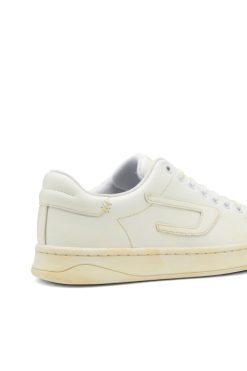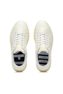 נעלי ספורט לבנות לנשים מעור עגל רך. החולצות הנמוכות הללו מעוצבות בצללית קלאסית של בית המשפט עם מיתוג אפליקציית ד ושלושה תפרים שמנמנים בלשונית האחורית. טיפול באבק בצבע צהוב מקנה מראה שחוק בעדינות.