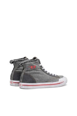 נעלי ספורט גבוהות לגברים אלה עשויות מג’ינס הפוך, היוצרות אפקט דו-גוני בגווני אפור. משופשף קלות ומוצב על סוליית מצוקה, החלק העליון בגימור עם ד רקום ותפירת טבק ניגודיות.