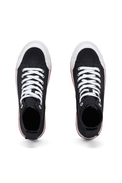 נעלי ספורט גבוהות זו כוללות גפה קנבס, נתמכת על ידי סוליית ביניים מגומי מגופרת עם כובע אצבע מגומי ומשטח מסטיק. מעוטר בעיניות מתכת ממותגות ותיקון לוגו ד אובלי בצד.