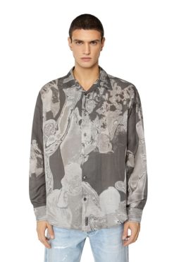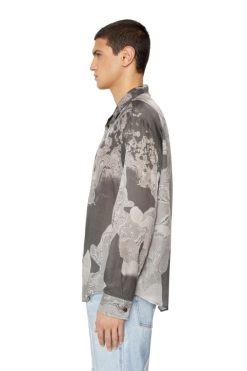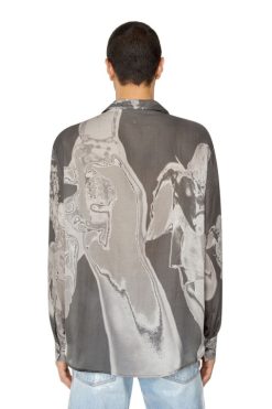 חולצת גברים זו מתהדרת בצללית באולינג עם שרוולים ארוכים, גזורה ממוסלין מכותנה משי. מודפס עם סצנת מסיבה כולל שצולמה אירוע דיזל, סגנון זה הוא חלק מקולקציית FW22 Runway Show.