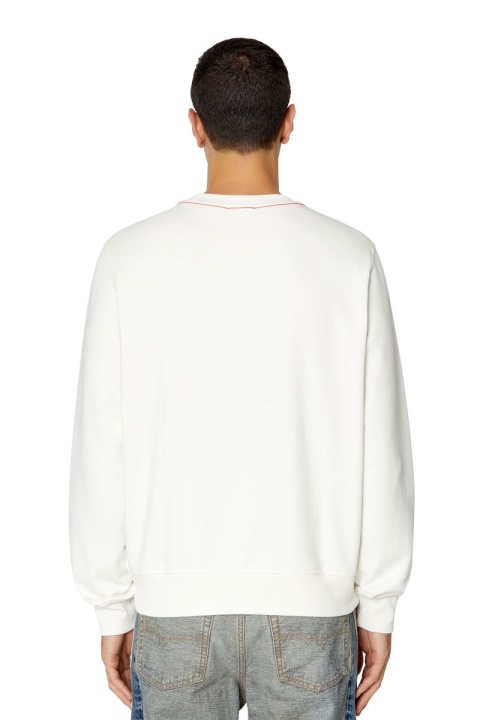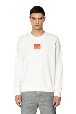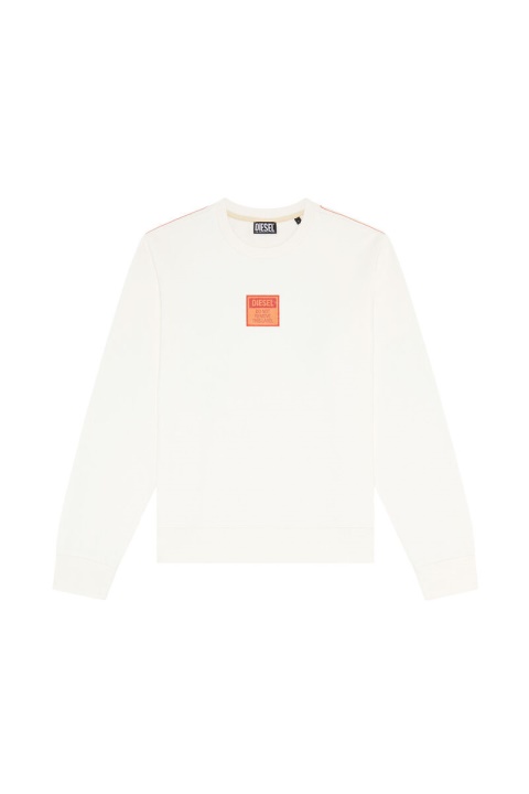 סווטשירט גברים בג’רסי כותנה רכה עם לולאה, בהתאמה רגילה וגזרות מצולעות. תפירת שרשרת ניגודיות עוקבת אחר הצוואר והכתפיים, בעוד שהחזה כולל טלאי עם המילים ‘אל תסיר את התווית הזו’.