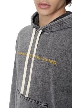 קפוצ’ון לגברים עשוי כותנה בהתאמה רגילה, צבוע בגד ומטופל לגימור צבע לא אחיד. מודפס עם המוטו ‘לחיות מוצלחות’, החזה נקרע בלייזר כדי להגביר את המראה השחוק.
