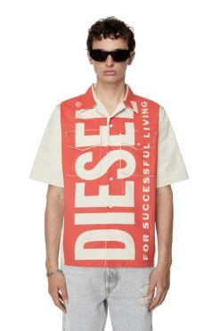 חולצת באולינג לגברים בכושר רגיל הבניה מאריג כותנה אורגנית כפולה. החלק הקדמי מתהדר בהדפסה לוגו מקסי של Diesel For Successful Living.