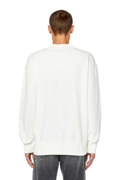 סווטשירט כותנה משוחרר לגברים זה מעודכן עם צוואר מוצלב. החזה מתהדר בהדפסה של מגן דיזל הרוס, מוגבה עם נייר כסף סדוק למעלה.