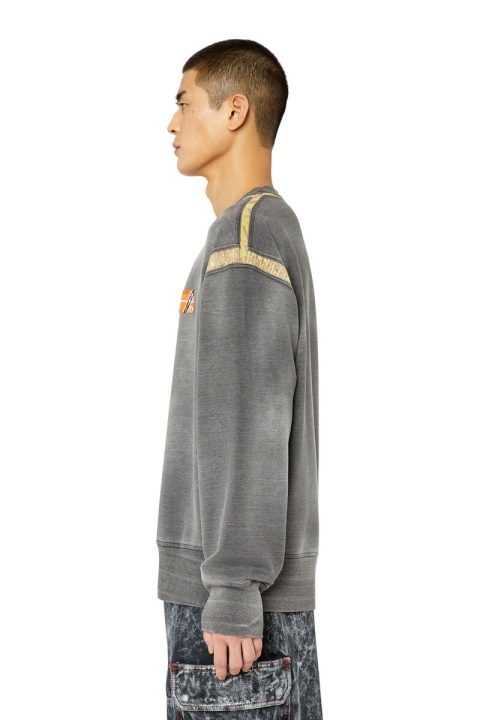 סווטשירט ג’רסי מכותנה בגזרה רופפת לגברים מעודכן עם תוספות מודפסות בקו הצוואר, הכתפיים והשרוולים הפנימיים. עם טיפול שטוף למראה מראה מראה, הוא ממותג עם טלאי אקארד דיזל ‘K4055’ על החזה.