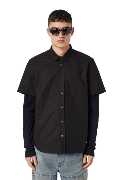 חולצה זו נחתכת מבד איטלקי קומפקטי וארוג היטב, שנעשה באמצעות כותנה אורגנית מאושרת. ממותג עם טלאי ד אובלי, יש לו התאמה רגילה ושרוולי ג’רסי מצולעים ארוכים למראה שכבות.