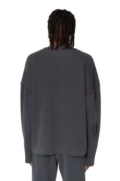 סווטשירט גברים עם צווארון צווארון בג’רזי כותנה עם לולאה. צבוע בפיגמנט לגוון דהוי, סגנון משוחרר זה כולל טלאי ג’ינס בלייזר לוגו שמציץ דרך גזרת המרפק. תפרי אוברלוק שמנמנים מרחיבים את המראה המתוקן.