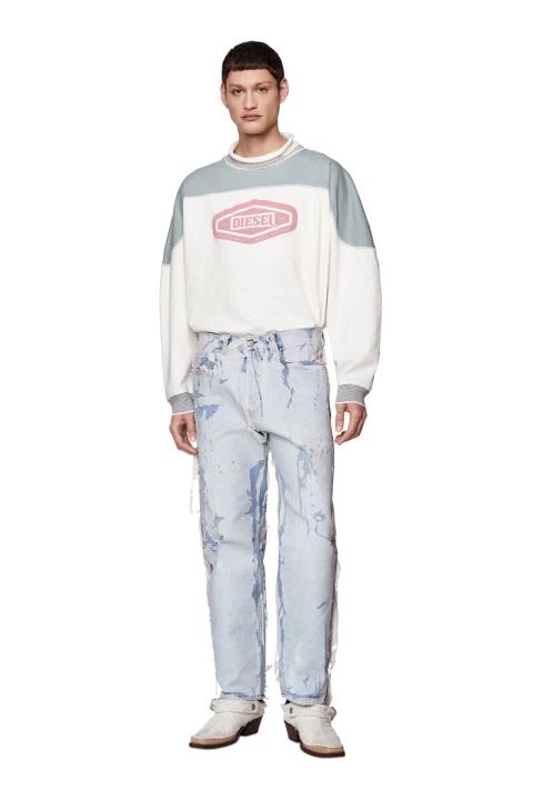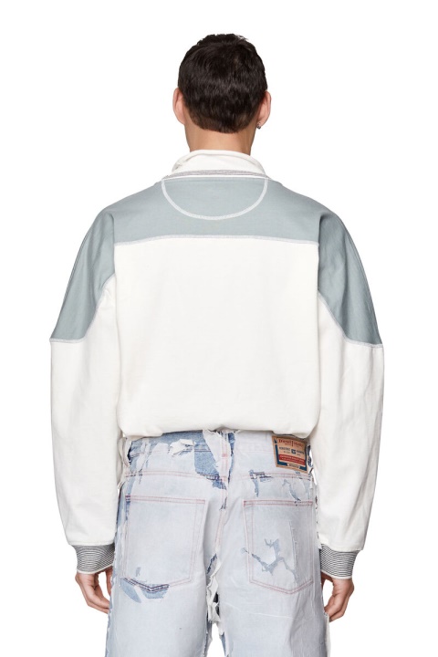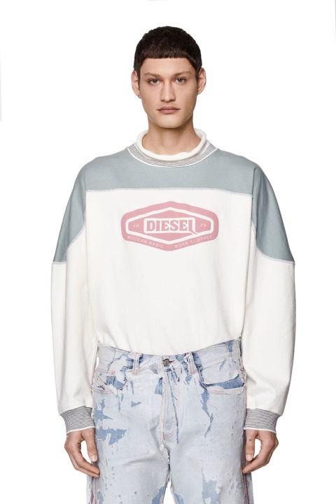 סווטשירט משוחרר מכותנה כבדה. בהשראת סגנונות מורשת, יש לו עיצוב דהוי בלוק צבעוני, תפירת אוברלוק וחפתים סרוגים עם פסים התואמים לצוואר המדומה. גרפיקת לוגו בהדפסה נפוח מעט את החלק הקדמי.