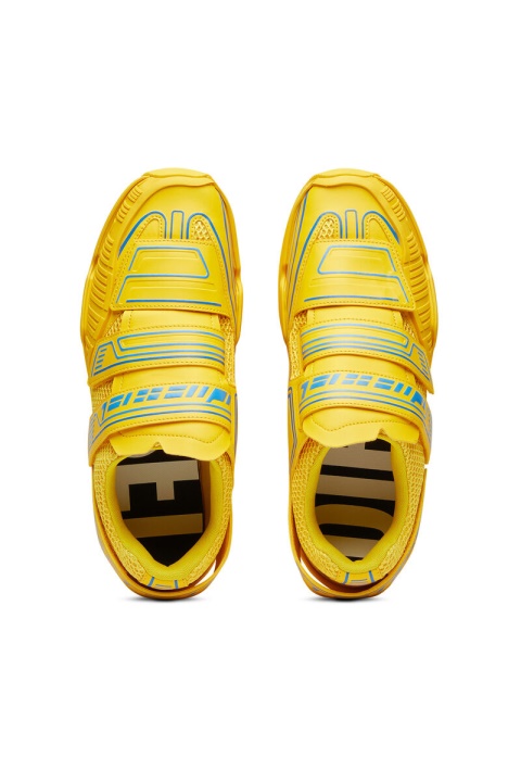 סניקרס נוסח מירוץ עשוי רשת ועור מלאכותי. שכבות גומי מעוצבות מחזקות את החלק העליון, מאובטחות עם רצועות סקוטש מתכווננות עליונות ואחוריות עם גרפיקה ספורטיבית. מוצב על סוליית גומי בפרופיל נמוך העוטפת את העקב.