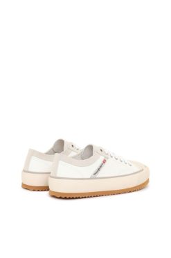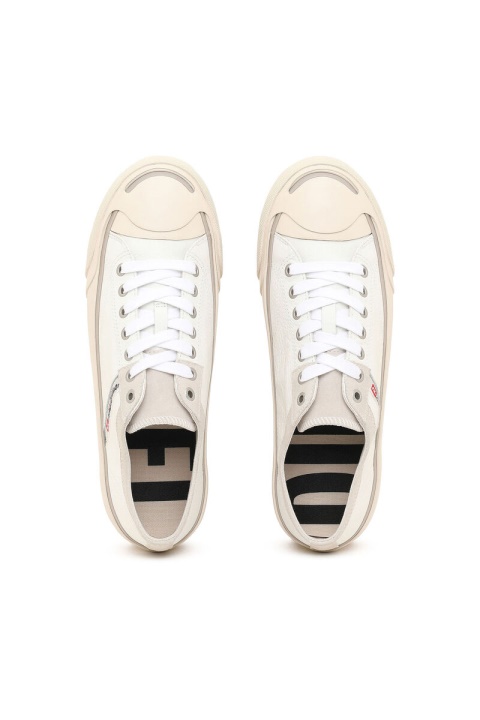 עשויה מעור מעוטר זמש, לנעלי ספורט נמוכות זו יש סוליה פלטה שמנמנה עם משטח מסטיק משופע וכובע אצבעות בשכבות. מפורט עם דגל לוגו הכיס האייקוני של דיזל לוגו ד מובלט על הסוליה האמצעית.