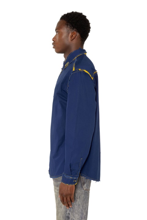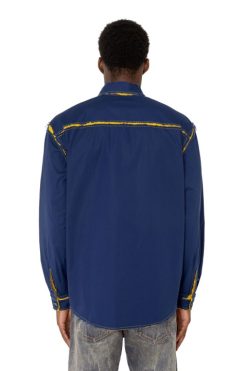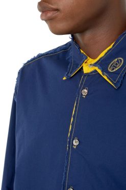 חולצת גברים זו נוסח שכ שטיפת נחתכת להתאמה רגילה משתי מנוגדות של פופלין מכותנה אורגנית. קונסטרוקציית הבד הכפולה ופופ הצבע נחשפים באמצעות שיוף לאורך הקצוות והפרים. עם לוגו תפור על סיום הצווארון.