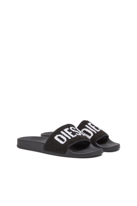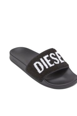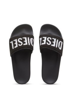 מגלשות בריכה לנשים אלו כוללות חלק עליון בתערובת צמר מטושטשת המעוטר במיתוג דיזל נועז.