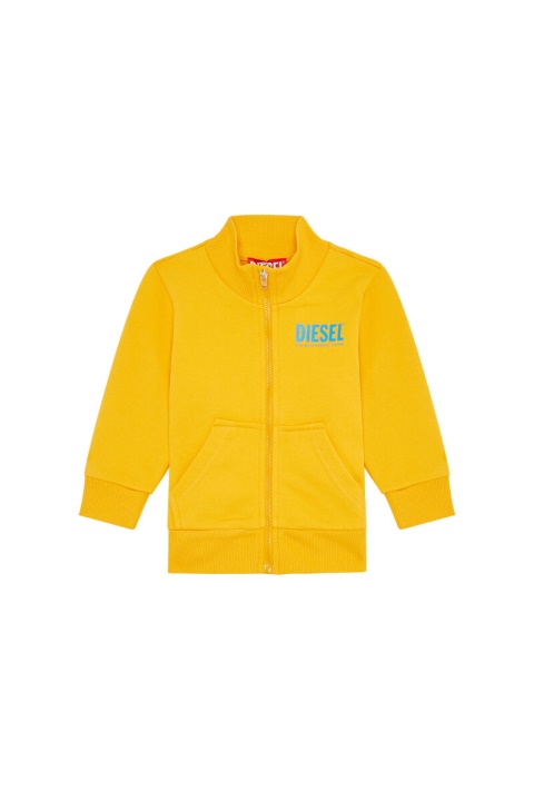 סווטשירט לבנים עם רוכסן עם צווארון גבוה וחיפויי צלעות. סגנון זה עשוי מכותנה מודפס על החזה עם הלוגו ‘דיזל לחיים מוצלחים’.