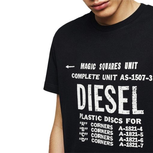 T Diego B6 חולצת טריקו לגברים עם צווארון קצר שרוול קצר קז’ואל כותנה שחור טי דיזל
